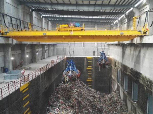 垃圾吊(又稱:垃圾抓斗起重機、全自動垃圾抓斗起重機)其設計制造符合GB、FEM、IEC等國標和國際通用標準。其結構有單層車架、雙層車架、單卷筒組和雙卷筒組;稱量綜合精度≤±1%;具有手動控制、半自動控制和全自動控制三種控制模式,三種控制模式可自由切換,在任何一種自動模式下都具有手動優先功能。目前我國公司產品已廣泛服務于日處理量在4800t/d,3000t/d,2400t/d,1200t/d,1000t/d,800t/d和小于600t/d的垃圾焚燒處理廠。