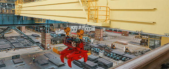 焙燒多功能起重機是指具有真空物料輸送系統、除塵降溫系統、陽極炭塊夾鉗裝置的專用起重機,是服務于陽極炭塊焙燒過程的工藝線專用起重機,即是陽極炭塊焙燒爐的專用操作設備。