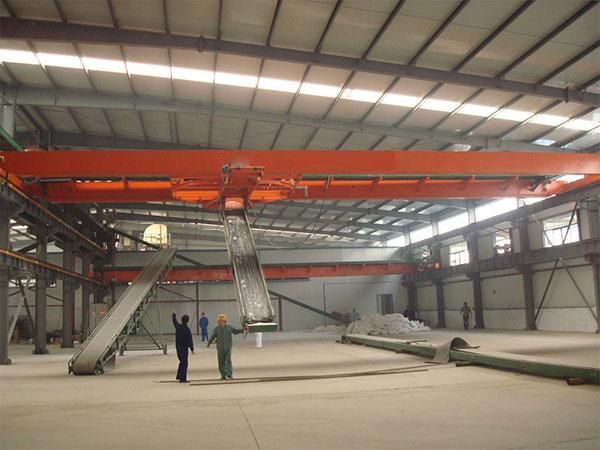 結構上通過大行車的縱向行走和小行車的橫向行走及升降輸送機的升降和旋轉,確保碼垛機在庫房任意位置進行堆包碼垛。